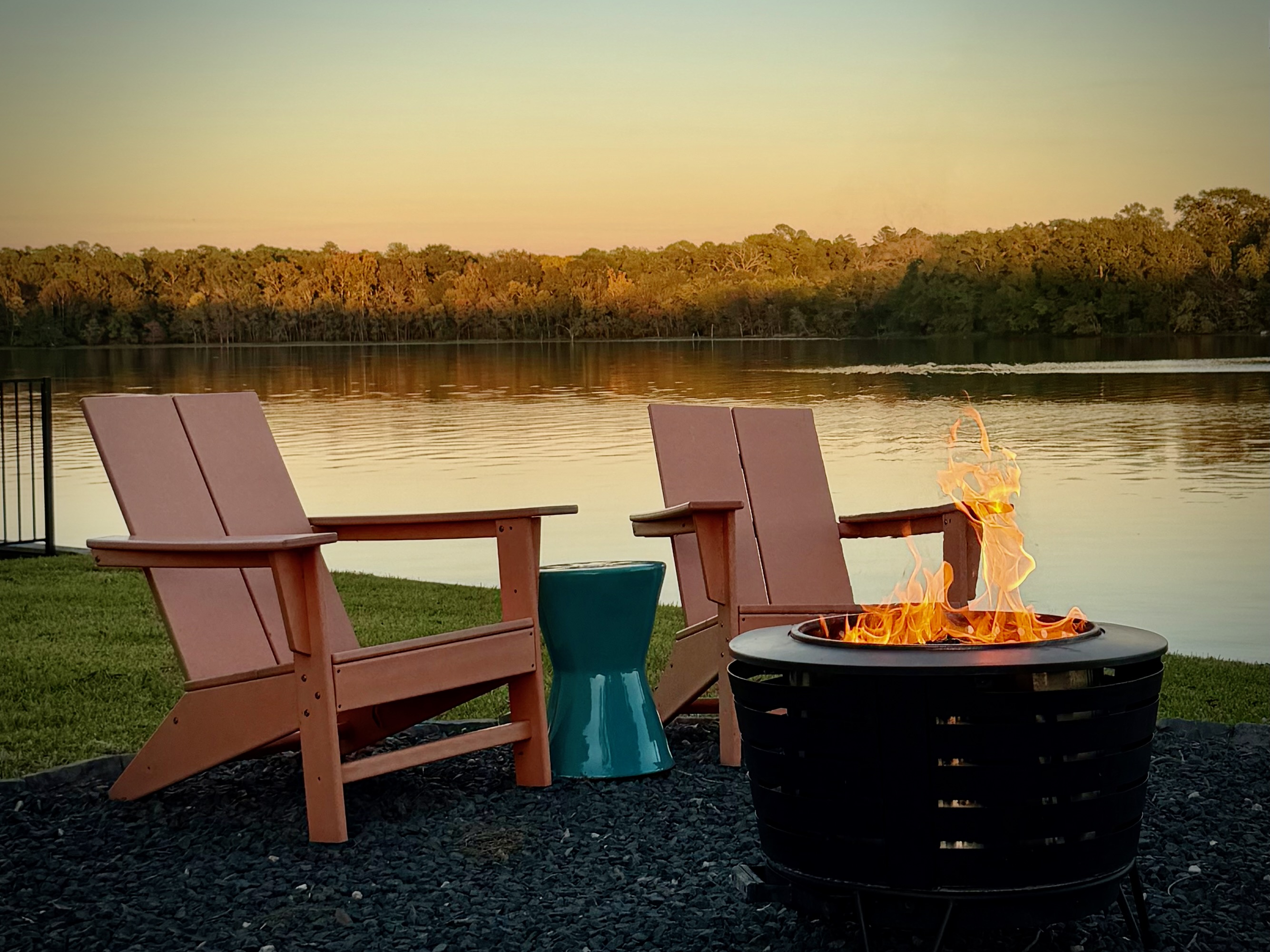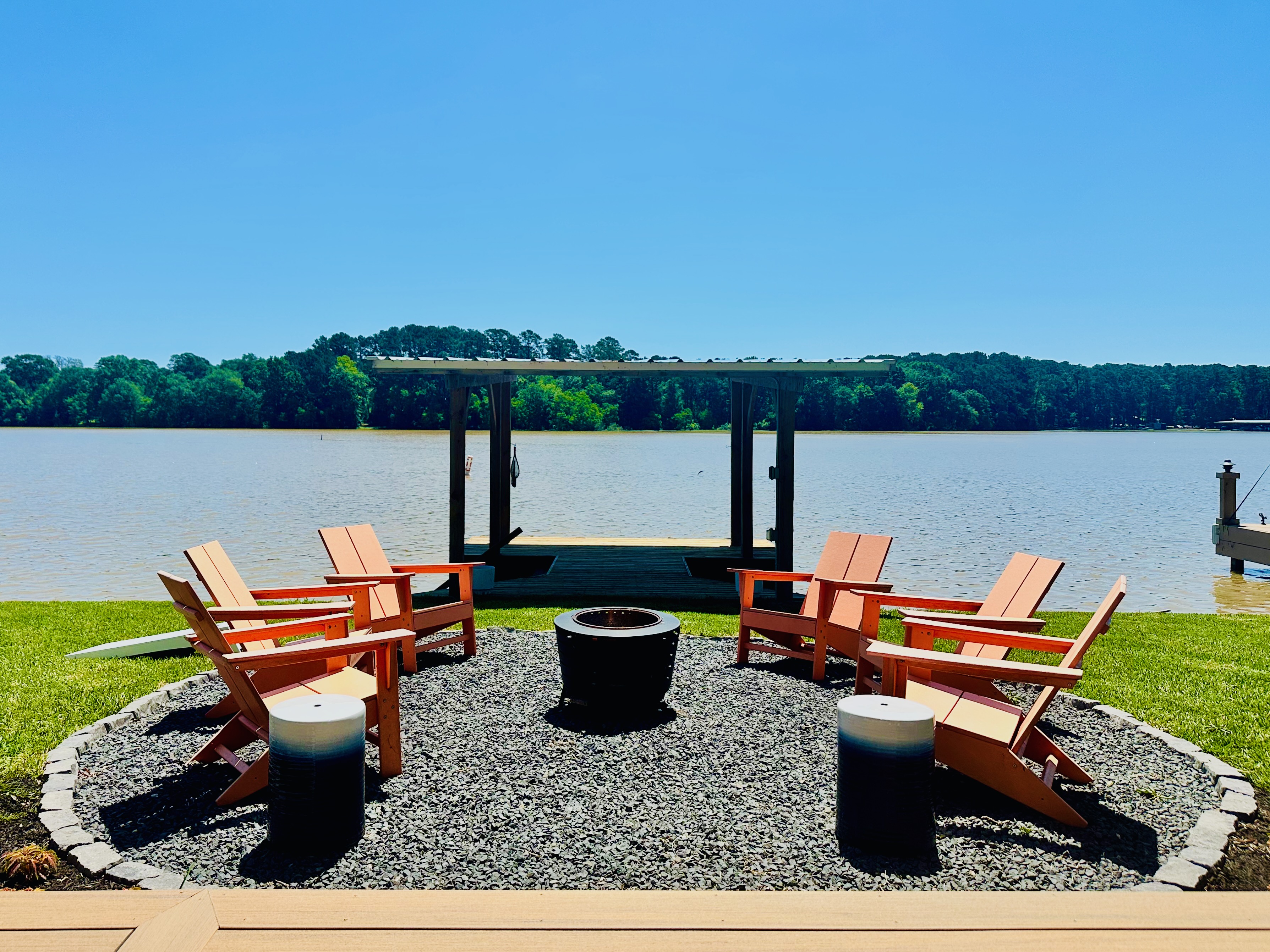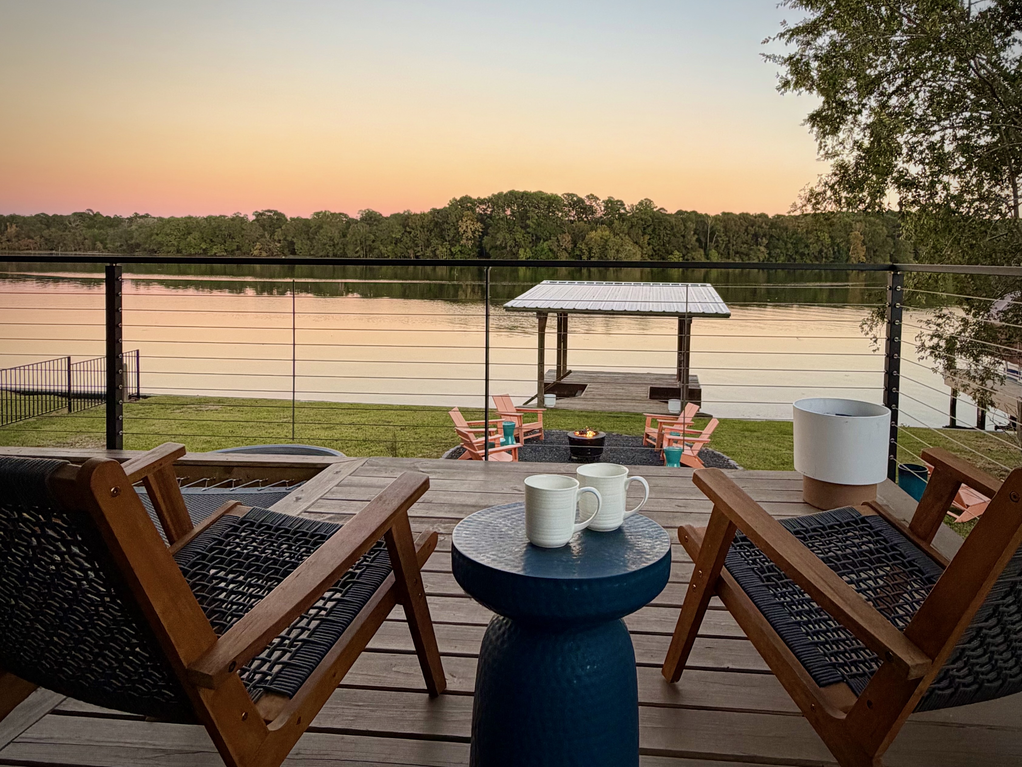 Savor mornings on the deck and cool nights by the fire at The Water’s Edge. Enjoy stylish interiors, a private dock with kayaks, and luxe touches throughout. Perfect for a relaxing getaway on Lake Conroe. → Lakefront lounge deck with Cowboy pool & ping pong → Waterfront fire pit lounge → Private dock + kayaks included → Gas grill → Designer interiors + luxury linens → Smart home lighting + Sonos audio