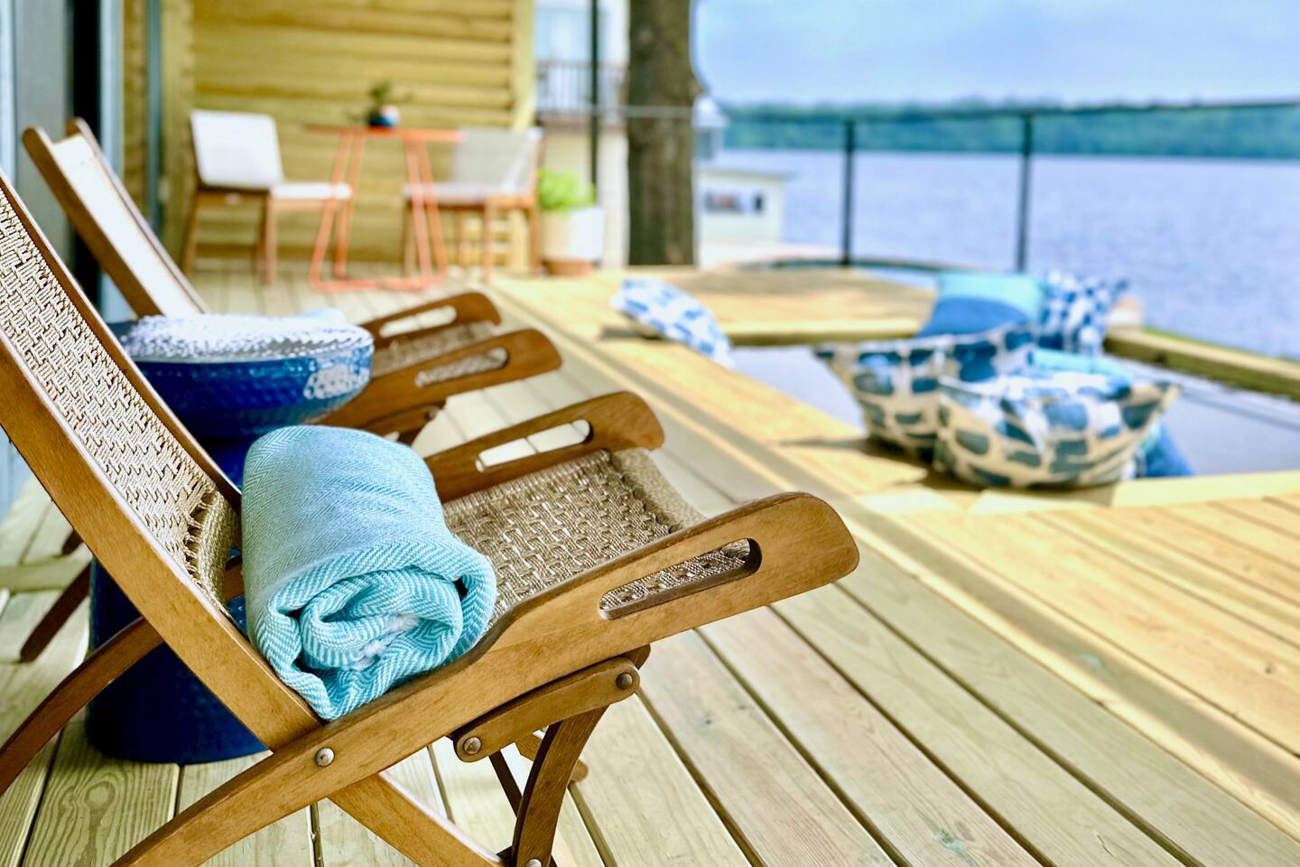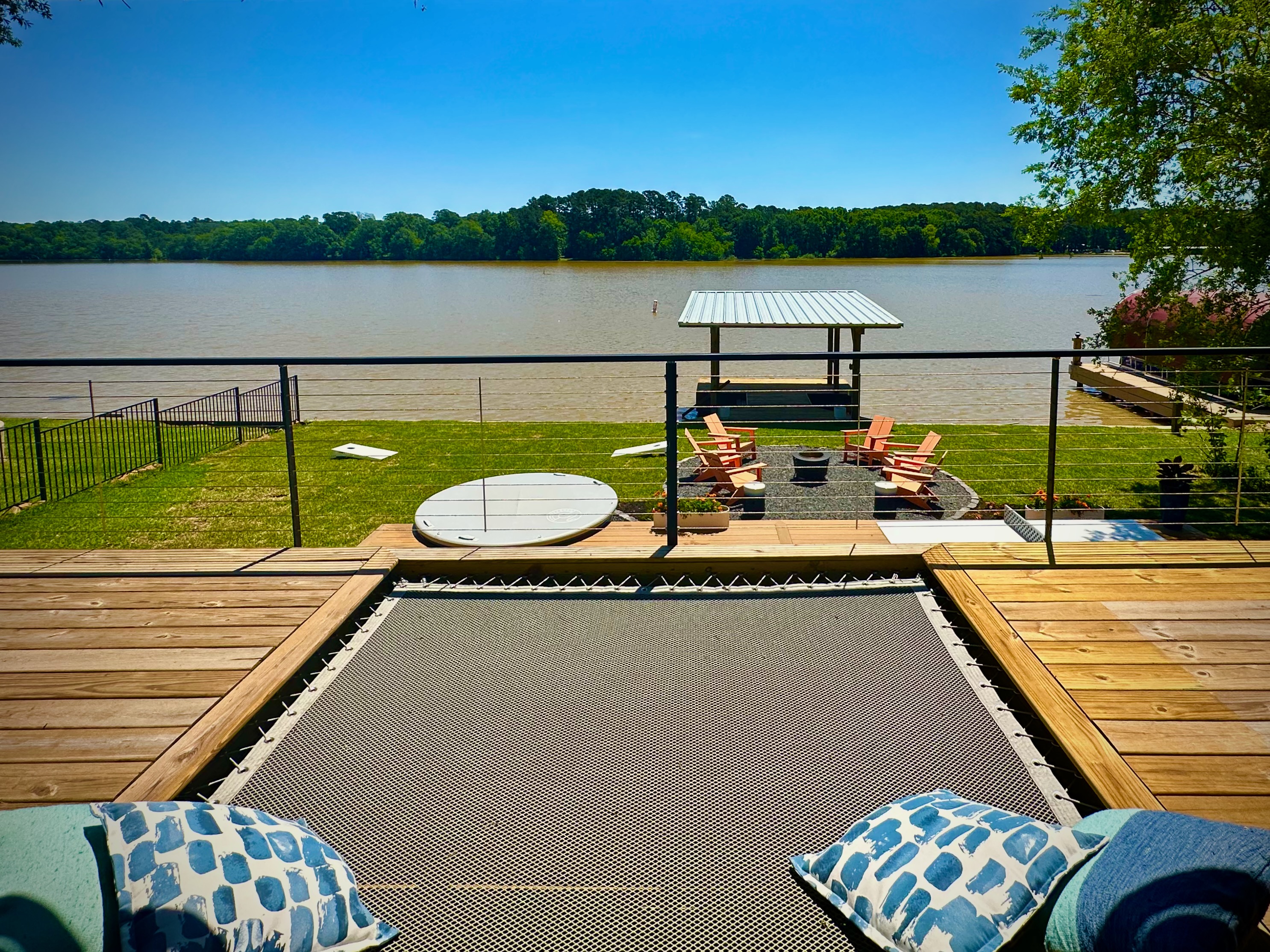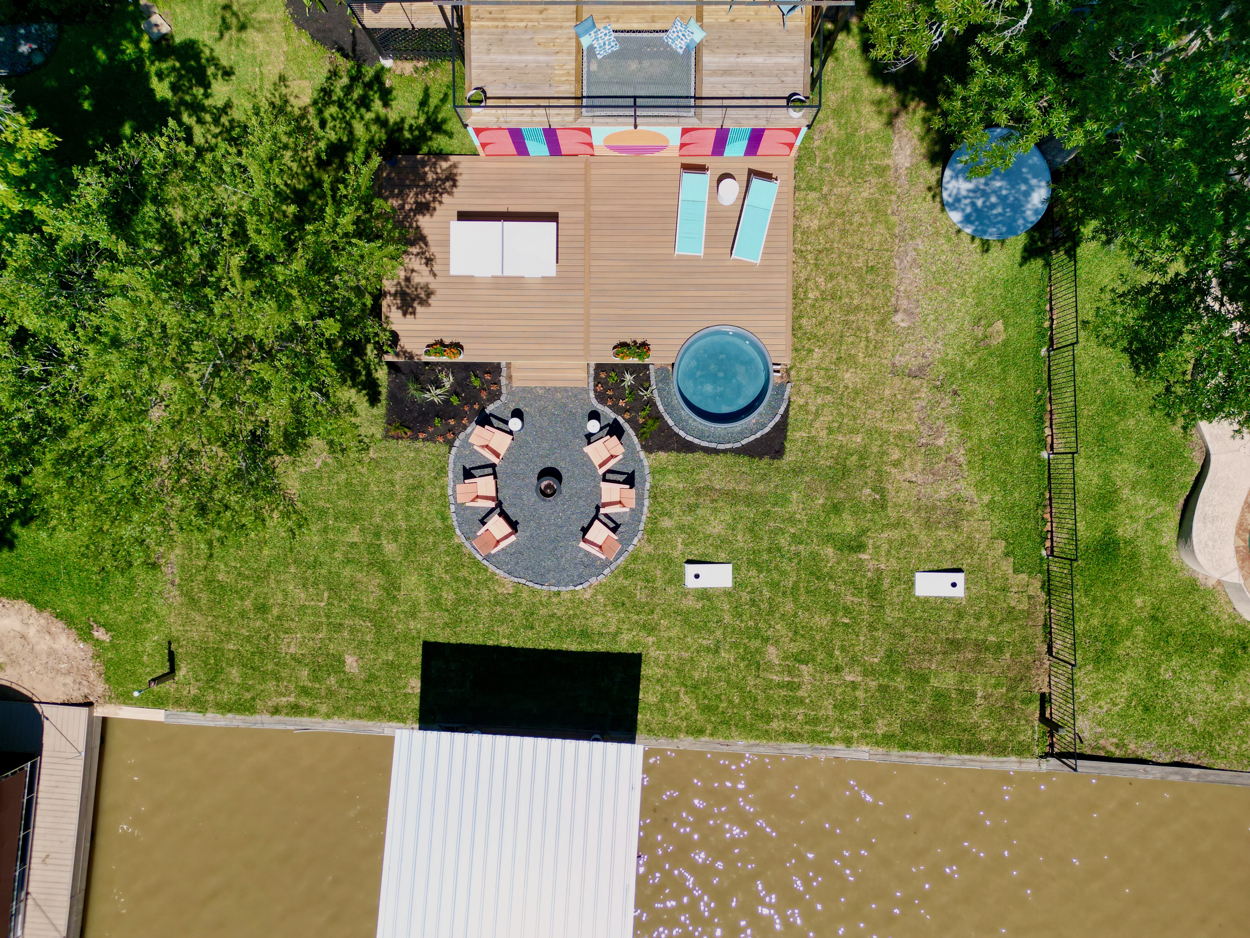 Savor mornings on the deck and cool nights by the fire at The Water’s Edge. Enjoy stylish interiors, a private dock with kayaks, and luxe touches throughout. Perfect for a relaxing getaway on Lake Conroe. → Lakefront lounge deck with Cowboy pool & ping pong → Waterfront fire pit lounge → Private dock + kayaks included → Gas grill → Designer interiors + luxury linens → Smart home lighting + Sonos audio