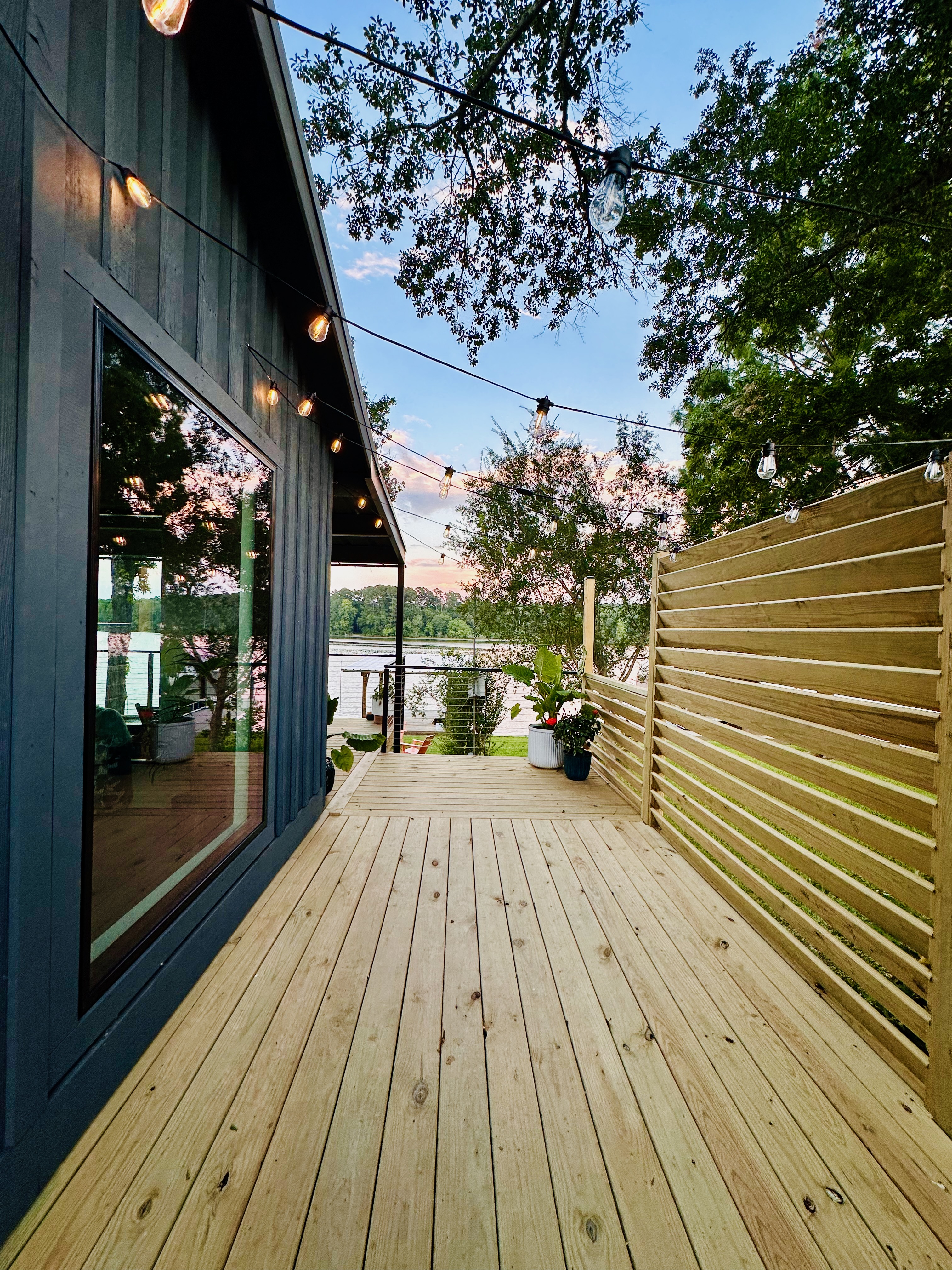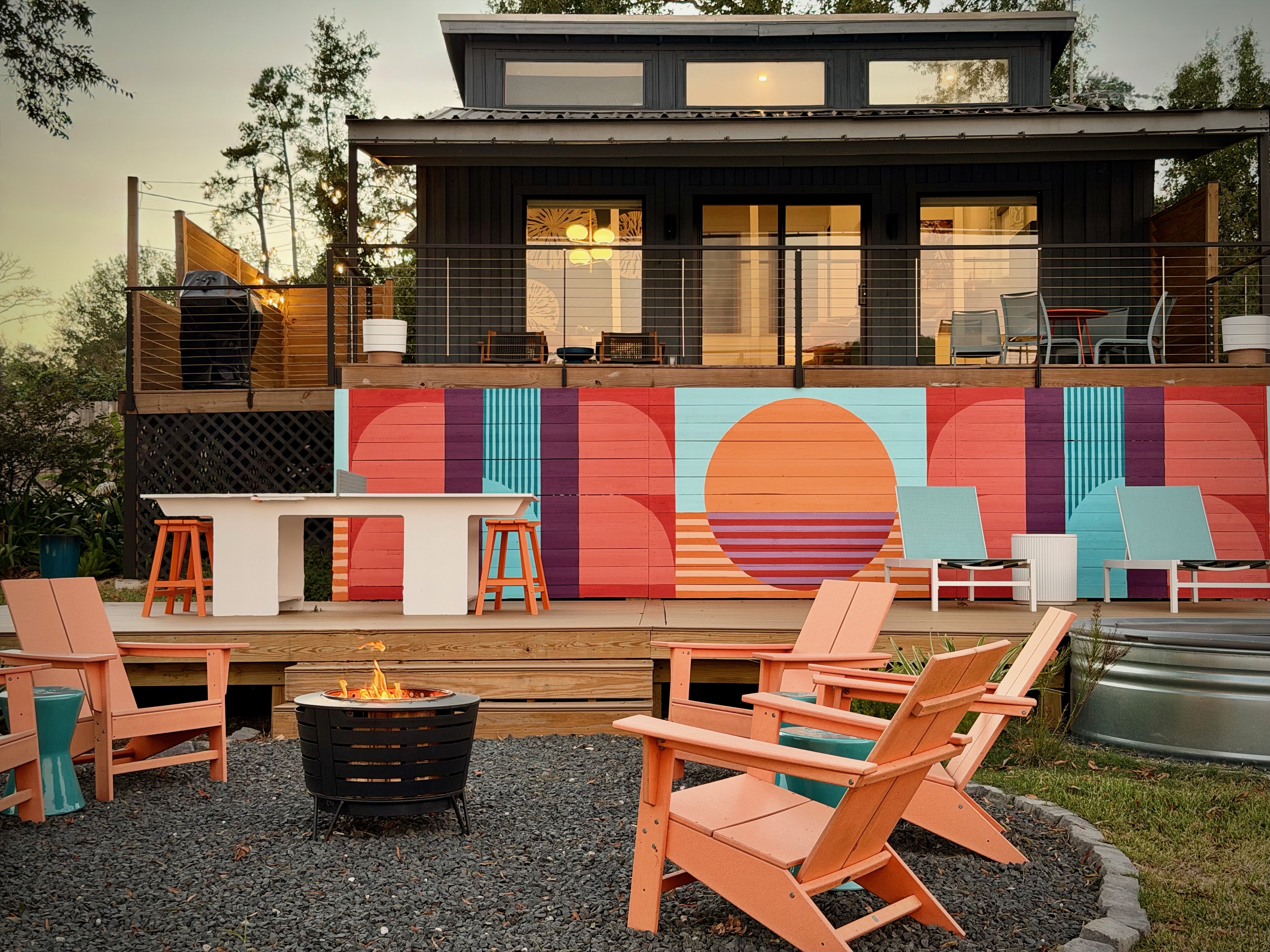The Water’s Edge was created to feel like a boutique retreat on Lake Conroe — stylish, serene, and thoughtfully designed. Wake up to peaceful water views, sip Nespresso on the deck, and end your day by the fire pit under a blanket of stars. Inside, enjoy designer furnishings, Sonos sound, and luxe details that make every moment feel effortless. Close to Stow-A-Way Marina and the Sam Houston National Forest, it’s the perfect fall escape for couples or families. Where you'll sleep → The primary bedroom has a king bed and an ensuite bathroom. → The secondary bedroom has a queen bed. → If you need extra room, there is a queen sofa bed in the living room. Modern amenities → Sonos whole-house audio system → Philips Hue lighting in the bedrooms and deck → Fast fiber internet Friction-free experiences are the best and we want you to be able to use the Water's Edge just like it was your own. We've designed it to be easy to arrive/depart and simple to get comfortable during your stay. We're here if you need something. Just send us a message with any questions.