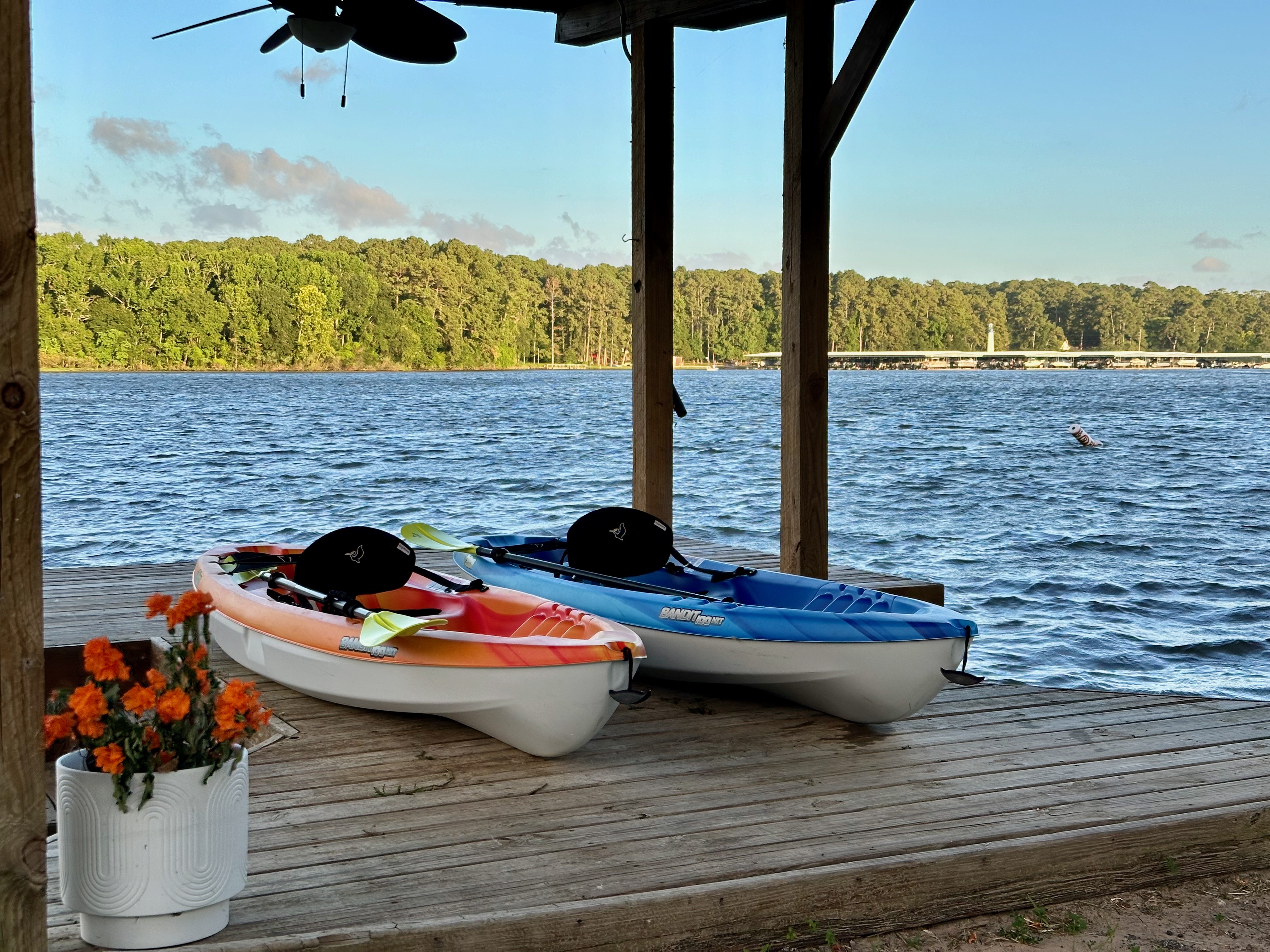 Guests are welcome to bring their own boat—you can tie up right at the property’s private dock. Stow-A-Way Marina is just two minutes away with a public launch. Enjoy the lake at your own pace with our two single-person kayaks and a selection of adult and kid-size life jackets. Paddle out at sunrise or unwind as the sun sets over Lake Conroe. We’re close to Sam Houston National Forest for hiking and trails, Downtown Conroe for restaurants, wineries and shopping. Grocery delivery from H-E-B in Willis makes it easy to settle in and relax by the water.